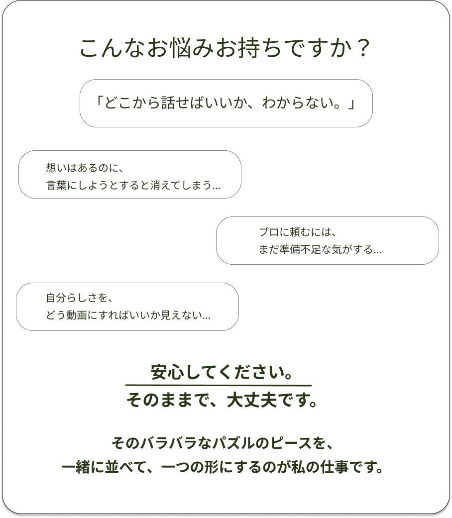 心理的な視点から本音や強みを引き出し、伝わるカタチへと設計します。